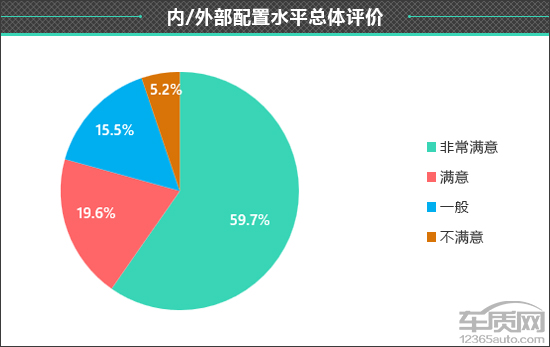 总体来看,2021款一汽-大众奥迪Q5L外部和内部的综合表现达到了车主的预期,分别有59.7%和19.6%的车主表示“非常满意”和“满意”,评价占比相对较高,而“一般”的评价占比为15.5%,明确表示“不满意”的车主占比仅为5.2%。