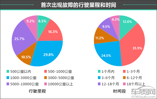 在这些出现非人为故障的车辆中,首次出现故障行驶里程在1000-3000公里的占29.8%,占比最高。而对于首次出现故障时间段的调查结果显示,有35.9%的车主表示车辆在购车1-3个月出现了故障,此外,购车3-6个月出现首次故障的车主占比也相对较高,达到了24.5%。