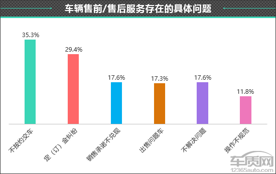 六、售前/售后服务:“不按约交车”抱怨相对较多