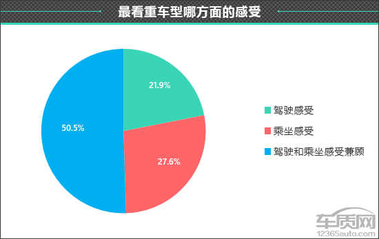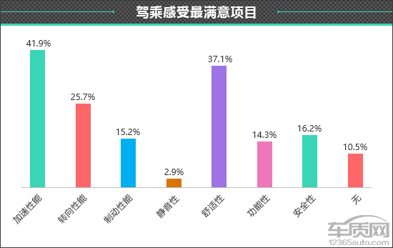 在衡量一款车型驾乘感受如何时,每个人所看重的部分不尽相同。在此次调查中,看重“驾驶和乘坐感受兼顾”的车主占比相对较高,达到50.5%。可见作为一款家用紧凑型SUV,大多数消费者更希望它能够兼顾多方面性能。