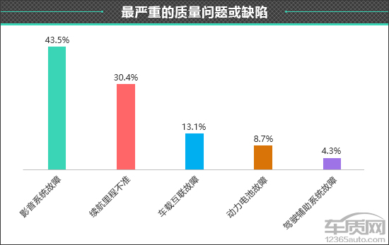 在对车主的进一步调查中我们发现,车身附件及电器出现非人为故障的占比相对较高,这也体现在“这款车最严重的质量问题或缺陷”调查结果中。经调查发现,车主对于2025款吉利银河星舰7 EM-i的抱怨大多集中在“影音系统故障”。此外,还有部分车主还表示其还存在“续航里程不准”的问题。