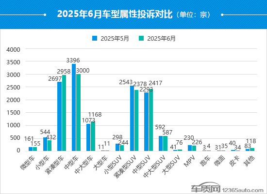 6月,紧凑型车的投诉量涨幅相对较大,环比上涨9.7%,投诉体量已逼近排名第一的中型车。相比之下,小型车是本月投诉量降幅最大的车型,环比下降20.6%,整体口碑表现出现回暖迹象。