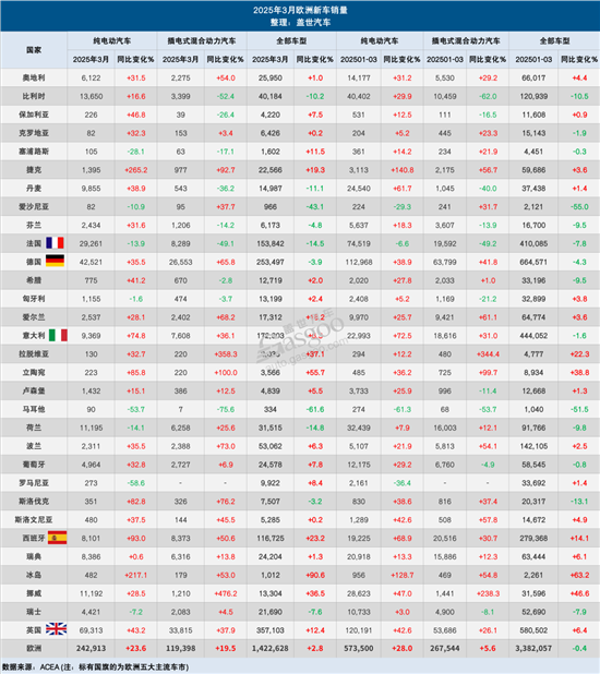 欧洲3月车市:西班牙、英国和意大利涨;法国和德国跌