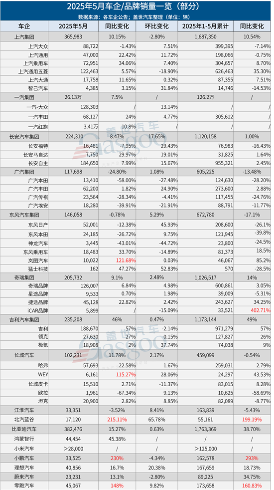 这些企业的表现值得肯定。尤其是广汽丰田,其前5月累计销量达到273,600辆,跑赢2024年同期,这在合资品牌中并不多见。