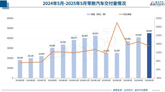 作为曾经处于造车新势力第二梯队的车企,零跑如今已稳居头部阵营。其5月交付量达45,067辆,同比增长超148%,再次拿下新势力榜首,这也是零跑今年第三次夺得新势力月度销冠。