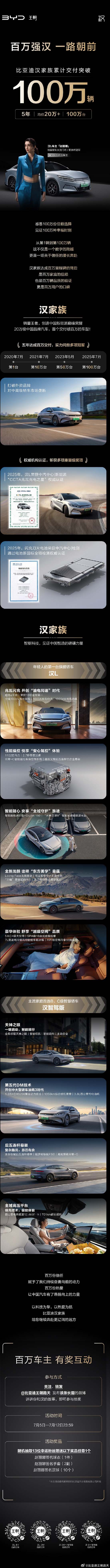 从时间线看,2020年7月首台车交付,到2025年7月达成百万辆,汉家族走过了五年历程。