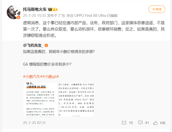 对此,小鹏汽车副总裁发文回应称:“虚假消息,这个事已经拉通内部产品,法务,政府部门。这家媒体恶意造谣,不是第一次了。要么哗众取宠,要么动机很坏。”