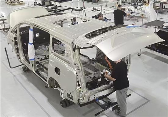 从官方晒出的照片可以看到满地的汽车零部件,现场正在进行手工组装。