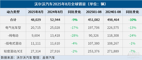 9月4日,沃尔沃汽车公布,今年8月份,其全球销量同比下降9%至48,029辆。其中,沃尔沃电气化车型(包括纯电动车型和插电式混合动力车型)8月的全球销量同比下降17%,占该公司当月全球总销量的43%(纯电动车型的占比达20%,插电式混合动力车型的占比则为23%)。