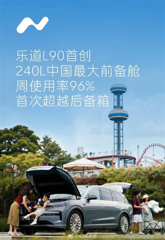 近日,乐道L90前备舱交出亮眼数据,其周使用率达96%,首次超越后备箱的95%。