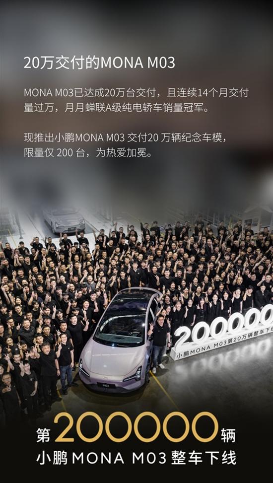 据悉,11月7日时,小鹏汽车宣布MONA M03仅用时14个月,就达成交付20万台的成就,车辆连续12个月交付量破万。