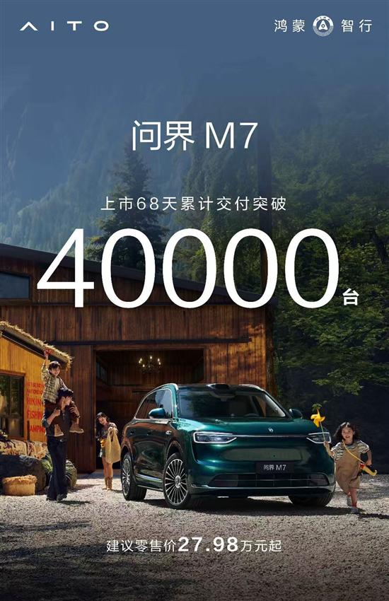 12月2日,从鸿蒙智行官方处获悉,全新问界M7上市68天累计交付突破40000台。