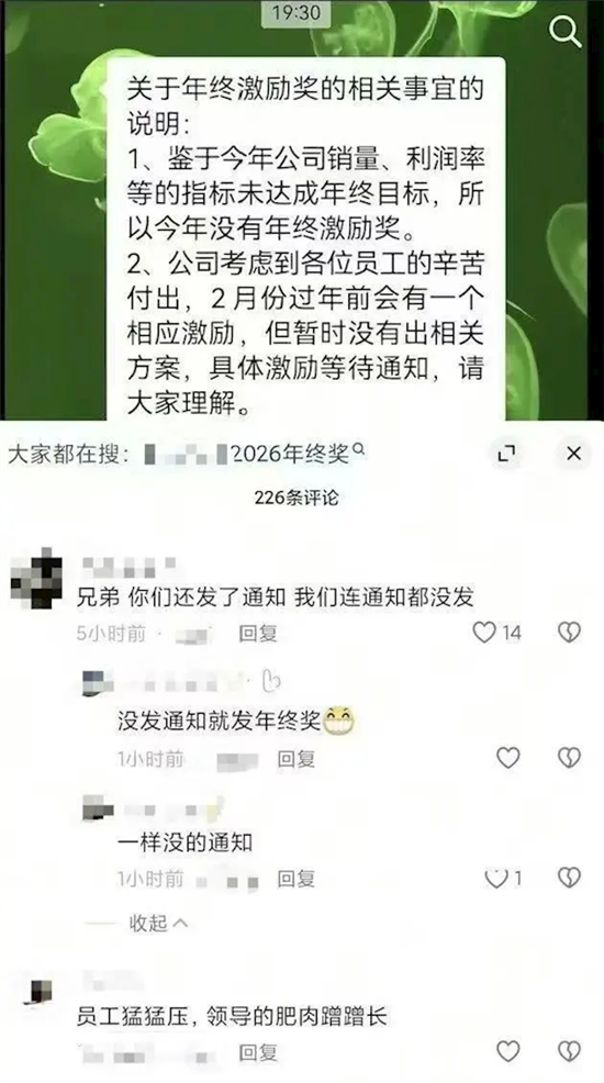近日,有媒体爆料称,国内某车企发出一则内部通知称:鉴于今年公司销量、利润率等的指标未达成年终目标,所以今年没有年终激励奖。
