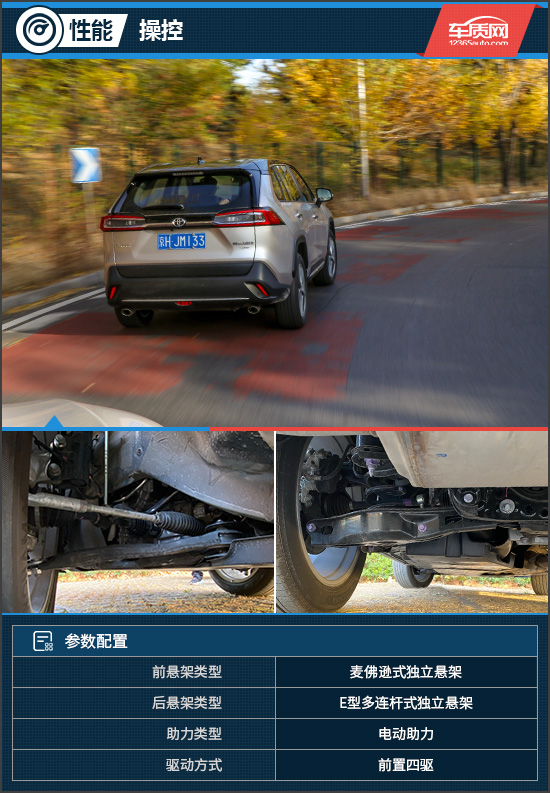 悬挂系统为前麦弗逊+后E型多连杆独立悬架,整体虽然比较注重舒适性,调校偏软,但依然有着不错的侧向支撑性,有一种柔中带刚的感觉。同时,滤震表现也比较出色,路面的细碎颠簸或者小幅震动都能很好抑制,不会传递进车内。而面对一些大的路面凸起,例如减速带等路况时,车内依然不会感受到生硬的冲击,悬架动作干脆利落,与传统日系车忽忽悠悠的“软”截然不同。
