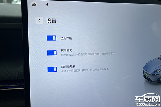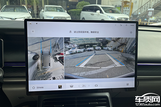 2024款领克07 EM-P配备了360度全景影像、车侧盲区影像以及透明底盘/540度影像功能。实测白天阳光充足的情况下,驻车影像清晰,不过存在畸变情况。360度全景影像支持多个视角查看,并且还配备驻车辅助线,可帮助驾驶者更轻松地完成日常驻车。另外,在设置一栏中,驾驶者还可以选择透明车模功能。