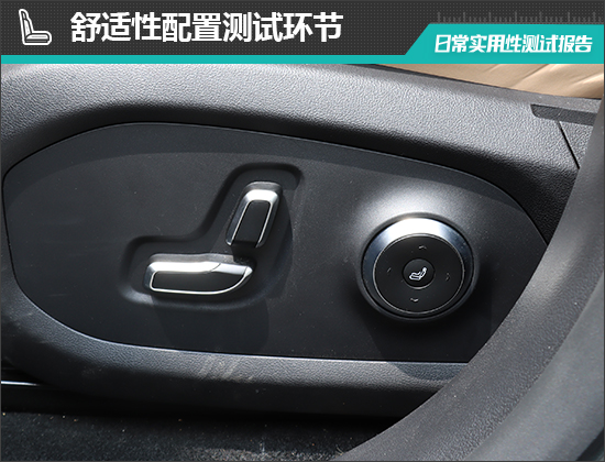 座椅方面,评测车主驾驶座椅调节按键位于座椅左侧,位置设计合理,调节较为顺手。同时,评测车前排座椅还配备加热、通风及按摩功能。值得一提的是,评测车后排座椅还支持座椅加热功能,舒适性表现可圈可点。