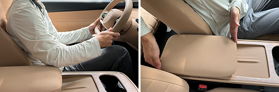 前排中央扶手造型规整且尺寸适中,表面采用软性材质包裹,枕靠舒适性不错。中央扶手虽然不支持前后移动和角度调节,但驾驶者在驾驶过程中依然可以将肘部搭在上面。