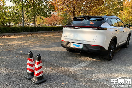 在测试前方视野环节,我们采用高70cm的桩桶作为参照物,随后调整车距,直至在主驾驶位可以看到桩桶上沿。经过测试,桩桶与车头最终测得的数据为2.285m,在测试过的同级别车型中处于中上游水准。