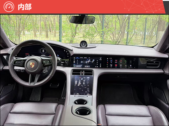 在外部感受评价中,评测车通过纯粹的轿跑车式车身线条来彰显运动感。前脸在采用封闭式格栅的同时,还保留了保时捷家族式宽扁造型,配合立体化前包围设计,兼具空气动力学与高辨识度。四点式矩阵光束LED大灯内部拥有32000个独立像素,支持动态弯道照明、防眩目远光等功能。车身侧面设计低趴,配合溜背线条,勾勒出四门轿跑车的视觉效果。短小的车尾极具层次感,贯穿式尾灯组进一步拉伸了视觉宽度。