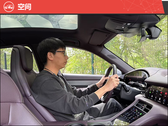 在内部感受评价中,评测车整体布局简洁,是标准的保时捷家族化设计。仪表台以横向线条展开,16.8英寸液晶仪表、10.9英寸中控屏和副驾娱乐屏的组合,全面提升了整体的科技感。同时,评测车还选装了夜视系统、可变光线全景天窗等配置,进一步提升用户的用车体验。