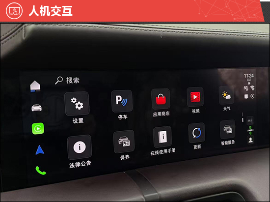 评测车搭载保时捷最新的车机系统,界面设计简洁、直观,操作过程比较流畅。系统集成了一些常用功能,如导航、车联网等。人机交互方面,通过语音系统可操作多媒体、导航、空调等,实测语音识别率一般。智能语音系统仅支持单区域唤醒识别,且不支持语音连续识别和可见即可说,在功能性方面还有待提升。评测车支持CarPlay,提升了日常用车的便利性。