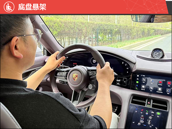 底盘方面,评测车采用前双叉臂式独立悬架、后多连杆式独立悬架,并配备自适应空气悬架,可以通过电子减震控制和动态悬挂调节,很好兼顾操控性和舒适性。为了给驾驶者提供足够的情绪价值,评测车还配备了保时捷电动跑车声浪系统,独特的声浪音效提升了驾驶乐趣。