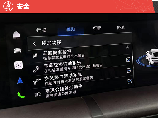评测车搭载L2级辅助驾驶系统,拨动方向盘左后方的拨杆即可开启,此时仪表盘中会有图标进行提示。跟车过程中加速和减速的力度适中,跟车距离支持5档调节,最近档位与前车间距适中,不容易被其他社会车辆加塞。