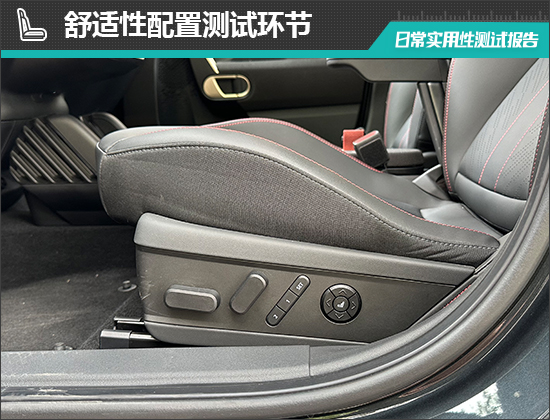 舒适性配置方面,评测车的前排座椅调节按键分别位于座椅左右两侧,位置合理且操作便捷。同时,驾驶位支持2组座椅记忆功能。此外,前排座椅还支持加热功能,驾驶位支持按摩功能,舒适性表现可圈可点。