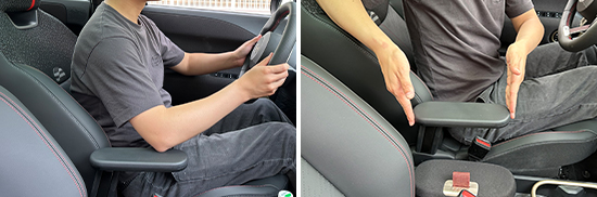 前排中央扶手尺寸较小,但表面采用软性材质包裹,枕靠舒适性不错。并且中央扶手虽然不支持前后移动和角度调节,但驾驶者在驾驶过程中依然可以将肘部搭在上面。