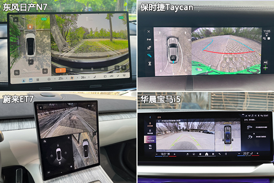 在影像辅助系统方面,四款车均配备360°全景影像系统,整体画质清晰,同时车辆周围的畸变控制也比较合理。此外,四款车的影像系统均带有可随动转向的倒车辅助线,实用性表现令人满意。
