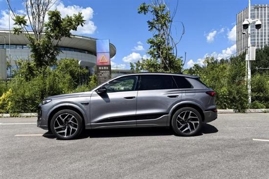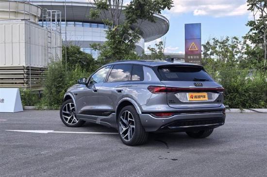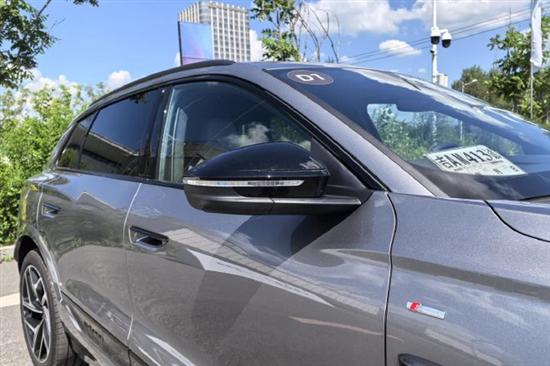 我们试驾的奥迪Q6L e-tron侧身有着明显的跨界SUV风格,略微上扬的下窗线和下沉式的车顶线条,以及侧围外板深刻的造型曲线都有着较强的运动感,半隐藏式车门把手、大倾角D柱等元素都没有缺席。而在三围尺寸上,奥迪Q6L e-tron定位是中大型智能纯电SUV,车身尺寸方面,奥迪Q6L e-tron长宽高分别为4884mm/1965mm/1694mm,轴距为2995mm;Q6L Sportbacke-tron的长宽高分别为4884mm/1965mm/1656mm,轴距为2995mm,相较海外版车型,两款国产车型轴距加长105mm,但这样的数据在同级车中也是一个颇为主流的数字。