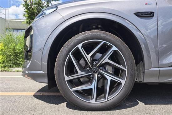 奥迪Q6L e-tron配备21寸空气动力学轮毂,造型偏运动。轮胎方面,试驾车使用的是来自固特异品牌electricDrive系列的21英寸前后宽度不同的轮胎,这是一条综合性能不错、偏运动驾控取向的专为新能源车打造的轮胎。