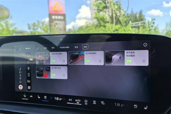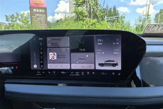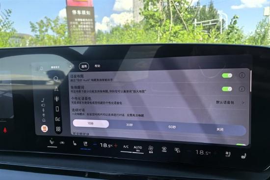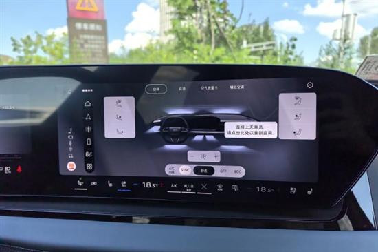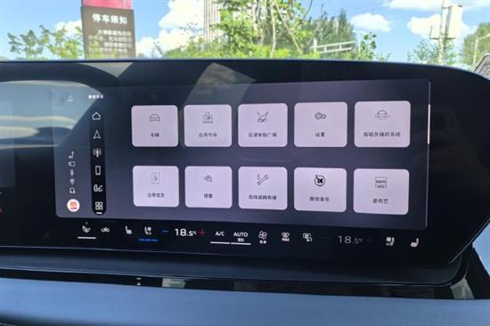 试驾车配备了双区域自动空调,带有香氛,将车内的空调信息全面集成在了中控屏幕之上,显示界面操作也很好用。