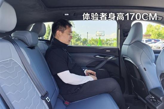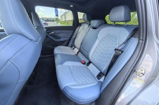 后排座椅乘坐质感和前排相比造型上立体感有所下降,但还是带有悬浮式头枕和侧翼支撑,乘坐感觉和前排相比并无太大落差。底部电池占用的空间控制得不错,高度尚可,整体坐姿还是比较舒服的。而基本纯平的空间也让第二排的中央座椅意义变得更强。