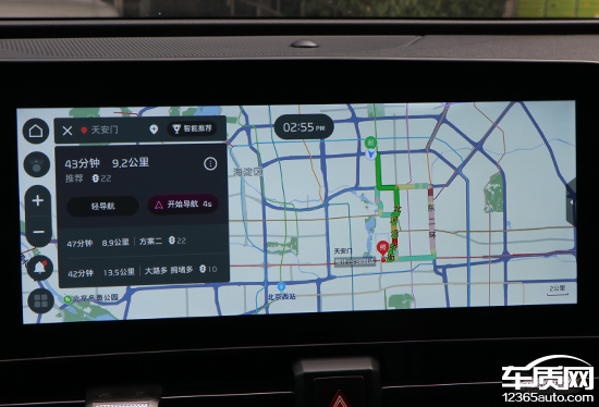 确认目的地后,系统会提供三条路线选择。基于车联网,导航界面还可以显示路线的拥堵情况,为驾驶员提供参考。除中控屏外,液晶仪表也都能够显示导航信息,但内容相对简洁。