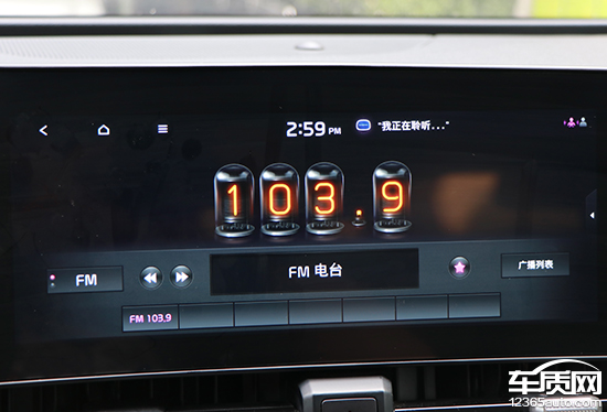 多媒体部分,系统内置FM/AM广播,用户可以直接通过语音指令进行操作,包括调节频率等,十分方便。收音机界面布局比较简洁,支持保存预设电台以及编辑列表等。此外,系统内还提供其他音源选择,例如蓝牙音频、USB音乐、QQ音乐以及有声读物等。