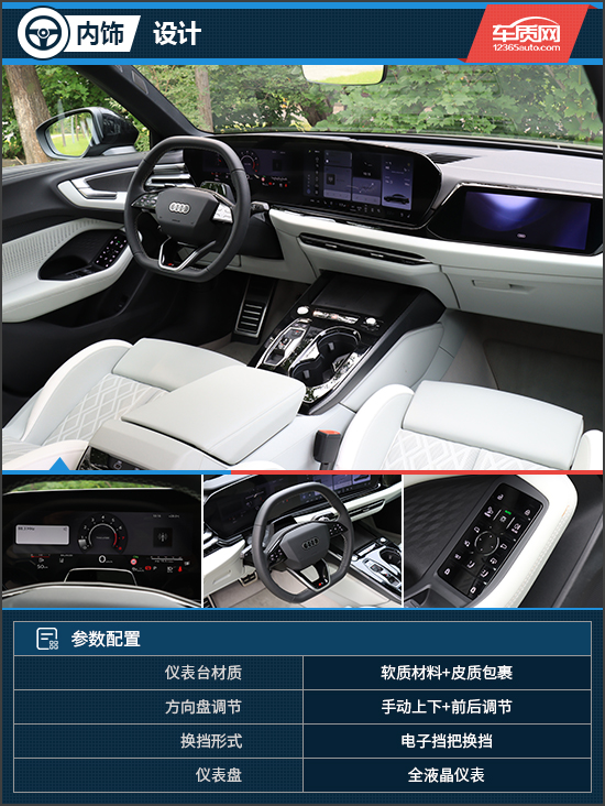 一汽奥迪A5L的内饰采用新一代智能座舱,MMI全景显示屏由11.9英寸液晶仪表+14.5英寸中控屏组合而成,搭配10.9英寸副驾智慧屏,能够提供不俗的科技感。主驾侧车门处集成了中控锁、前灯组照明模式、外后视镜调节、主驾驶位座椅记忆以及后排儿童锁等功能,便于操作。