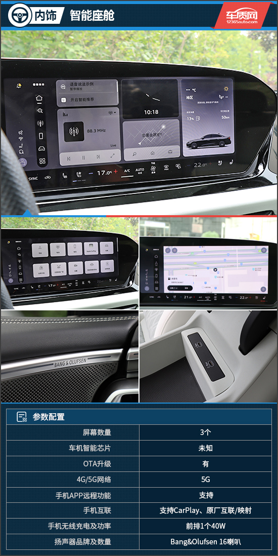 车机系统焕然一新,无论UI界面还是内置功能都有大幅升级。全场景语音助手支持多指令连续对话、可见即可说等功能,为用户提供丝滑的车内语音交互体验。此外,16个扬声器的Bang&Olufsen音响效果出色,尤其是音乐厅模式,充足的环绕效果能够呈现出犹如身处现场的聆听感受。