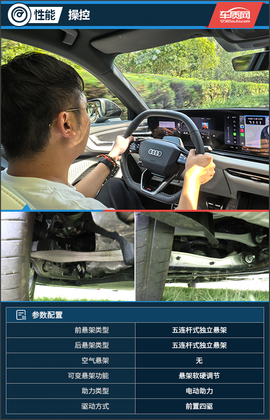 操控性依旧是一汽奥迪A5L的拿手好戏,弯道中表现稳健,侧向支撑力充足,能够给予驾驶者充足的信心。同时,较快驶入弯道,车辆会按照预定线路行驶,依托quattro四驱系统,即便弯中加速也不会出现推头现象,操控仍是一把好手。