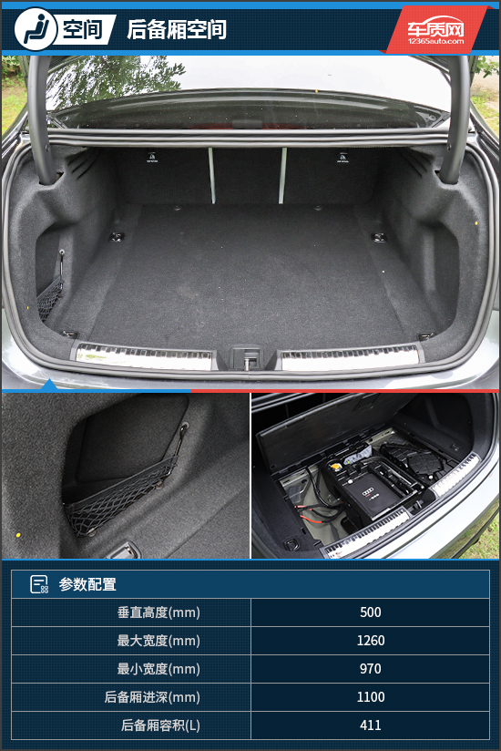 后备厢内部规整,常规状态下可以容纳4个登机箱,左侧还配备了置物网兜,方便放置易于滚动的物品。第二排座椅支持4/6比例放倒,放倒后可以与后备厢地台保持全平,拥有不俗的扩展能力。