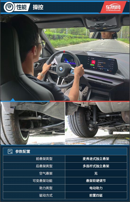 悬架方面,华晨宝马M235L采用前麦弗逊、后多连杆式独立悬架组合,底盘整体感极强,紧绷而扎实。悬架采用了M Performance特有的调校,在应对细小颠簸时,它保留了足够的宽容度,不会让乘客感到烦躁;而高速过弯或快速并线时,悬架的中后段支撑性极其到位,侧倾被抑制在非常小的范围内。LSD限滑差速器的加入,也让这台前置四驱车最大程度减少推头风险,让人驾驶更有信心。