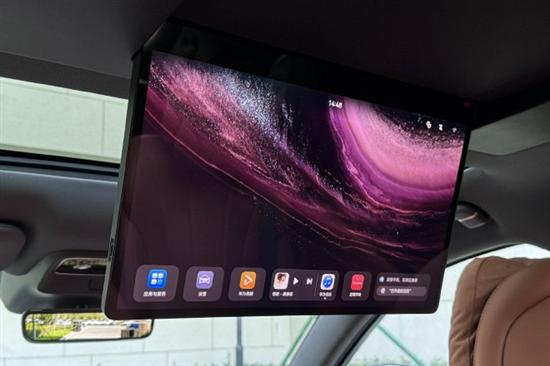 值得一提的是,问界M7后排首次搭载17.3英寸3K娱乐屏,其支持触控、语音与遥控器三种控制方式,背板采用微绒涂装工艺,触感细腻,收起屏幕时与车顶棚融为一体。