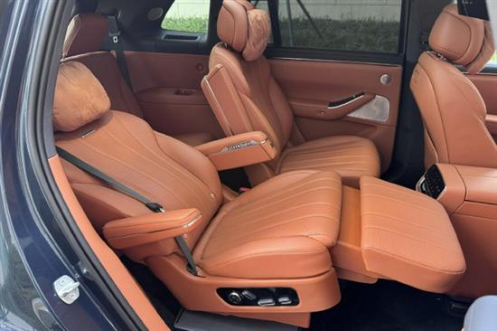 配备21英寸多辐轮圈,百搭的经典款的造型很符合该车的气质。实拍车型选装了前265/50 R21,后285/45 R21的倍耐力P Zero E 轮胎,其广泛应用于高端豪华汽车和电动汽车领域,可以为车辆提供出色的抓地力和操控性能,同时提升行驶的舒适性。