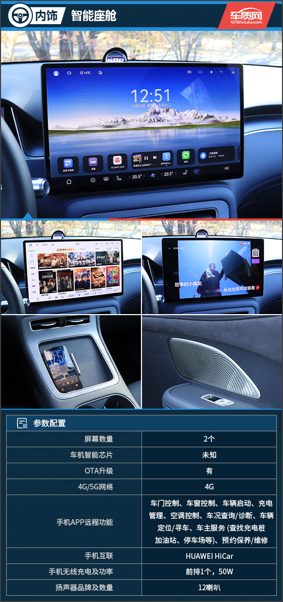 华为鸿蒙座舱是尚界H5的一大亮点,车机系统支持超级桌面、原生车机导航等。其中,超级桌面能够将手机App直接流转至中控屏内,做到手车无缝衔接,颇为实用。实测这套系统无论是操作逻辑还是响应速度,均处于同级领先水平。此外,座舱还配备了无麦K歌功能,不受App限制,可以随时随地想唱就唱,让旅途更有趣味性。评测车配备12喇叭扬声器,音质表现不错,并支持多种环绕模式,非常适合播放潮流音乐。