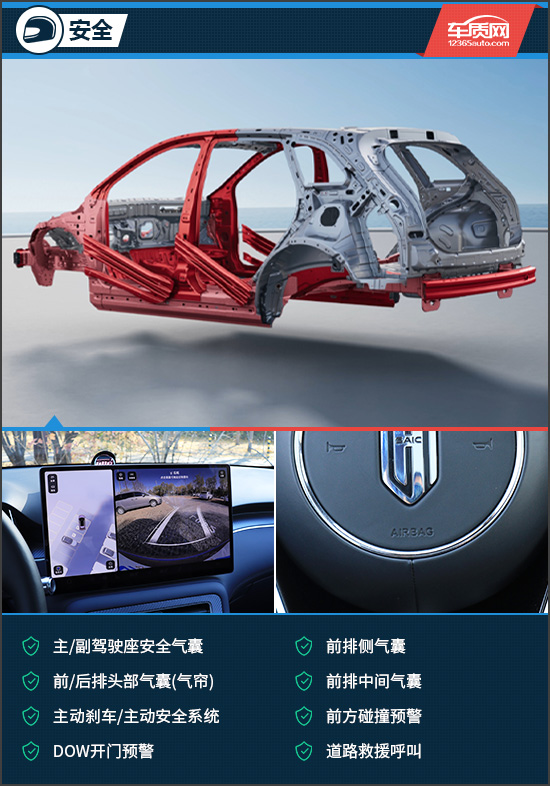 安全配置方面,评测车配备了非常完善的主/被动安全配置,包括主动刹车/主动安全系统、前方碰撞预警、主/副驾驶座安全气囊、前排侧气囊、前排中间气囊等均没有缺席,整体表现十分出众。在看不到的地方,尚界H5整车采用84%超高强钢及大面积1500MPa+热成型钢,扎实用料更安心。