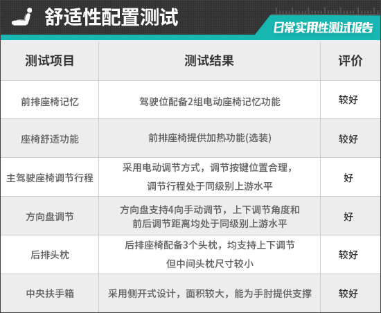 二、舒适性配置测试