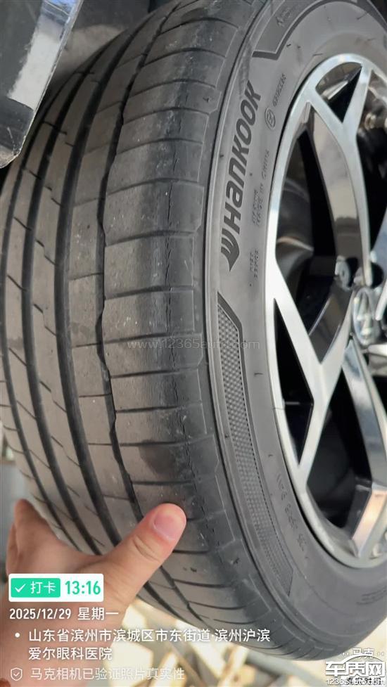 一汽大众迈腾韩泰轮胎无故开裂 吃胎偏磨