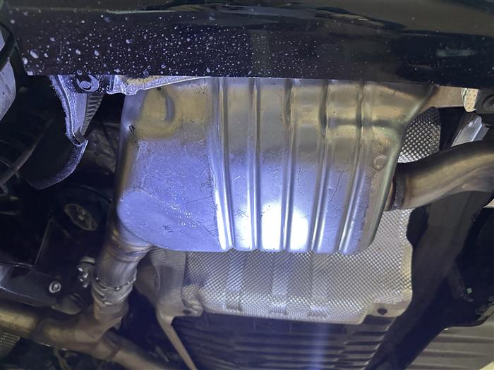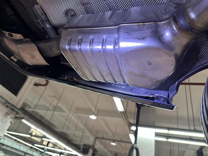 3)2026年1月4日现场再次查车除了确认了绝大部分更换上去的部件为2023年及2022年生产的之外,还发现排气管及后羊角表面明显的痕迹。这些绝不是安装施工不小心所能导致的,严重怀疑是旧件、拆车件;