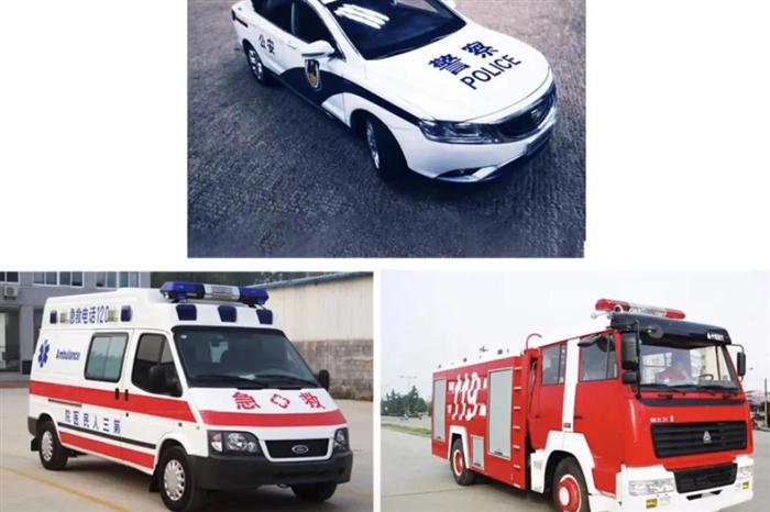 警车、消防车、救护车、工程救险车应当按照规定喷涂标志图案,安装警报器、标志灯具。