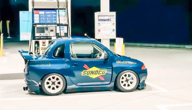 铃木TWIN是在2003-2005年之间只生产了2年的产品(总产量只有10106辆),铃木定位TWIN是一款主打省油的双人代步车,(还有业内领先油电混合动力系统版本),长2735mm,宽1475mm,高1450mm,轴距1800mm,空重570kg,动力只有孱弱的44马力,不过1L油能达到34公里的极致节能效果。这套称为SUZUKI TWIN CONVERSION套件,是通过车头和叶子板部分嵌套安装实现改装的,套件包括:发动机盖 前保险板,大灯总成,前叶子板,前保险杆,后叶子板,后备箱总成,尾翼套件以及后保险箱杠以及尾灯。